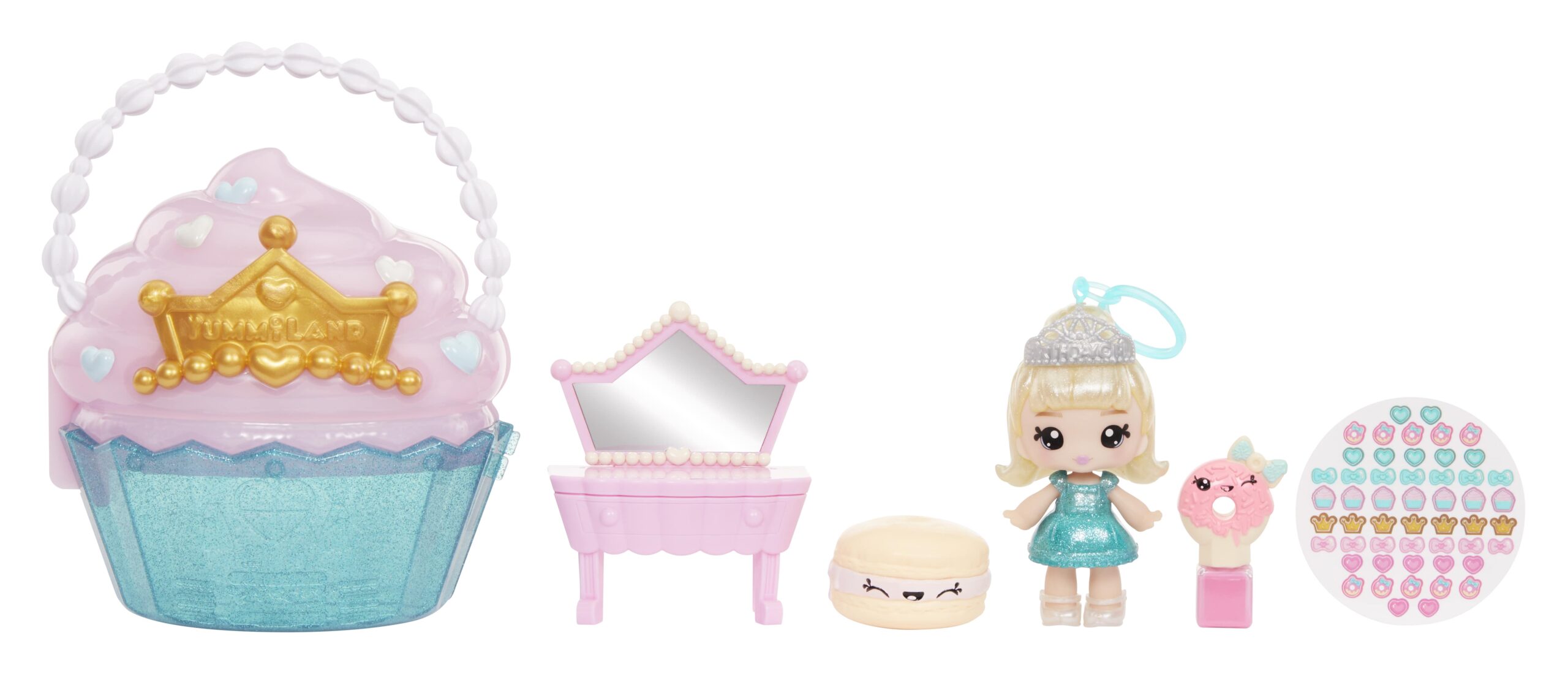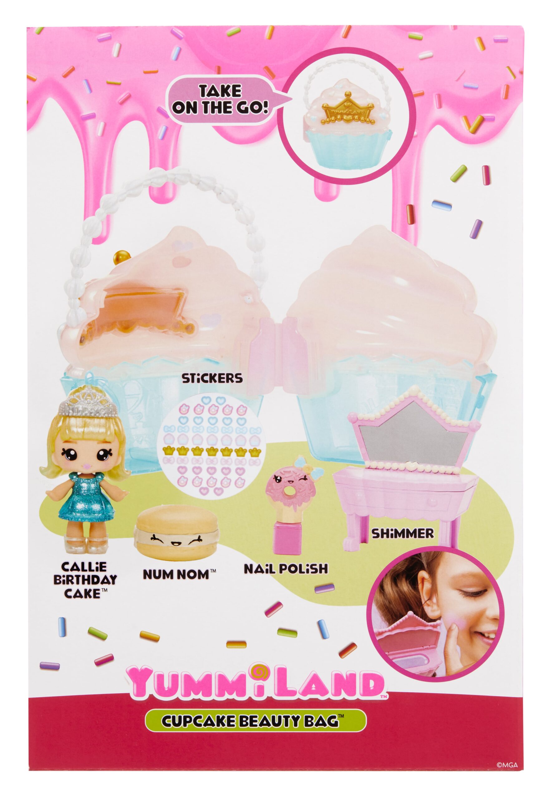 Rozkošná Cupcake sada obsahuje mini toaletku pro panenky s lesky na rty! V balení najdeš opravdové třpytky na tělo, sedátko jako z cukrárny, lak na nehty, samolepky na nehty a panenku Callie Birthday Cake s přívěskem na klíče.
